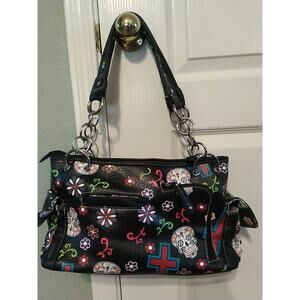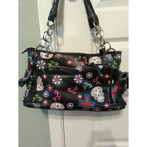 Day of the Dead Handbag Women Purse Skull Bag Consealed Carry Pocket EUC