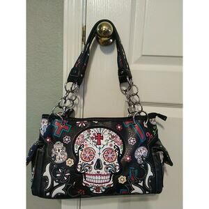 Day of the Dead Handbag Women Purse Skull Bag Consealed Carry Pocket EUC Cowgirl Trendy