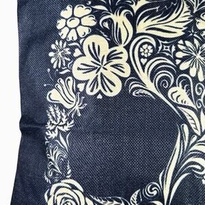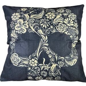 Black Sugar Skull pillow cover with an elegant beige floral design and beige back to decorate your home for Halloween and Day of the Dead. Fits 17" or smaller pillow cushions.