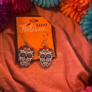 Day of the Dead wreath and earrings Vibrant colors with tags