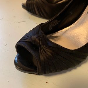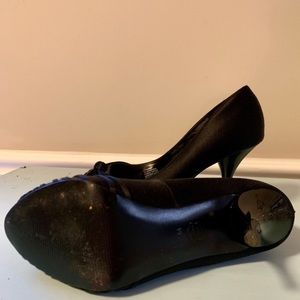 Take your day shift to evening fun with these black satin beauties! Scuff and rough on the bottom soles where they should be but that is all.. just like new!