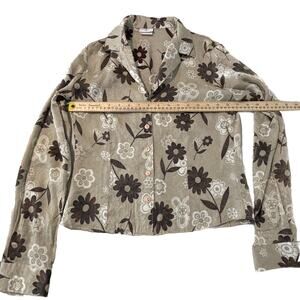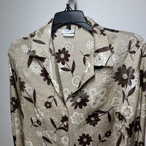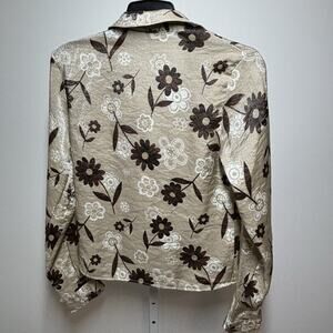 Day2Day Nylon Rayon Blouse Long Sleeve Button Up Taupe & Brown Floral Fit S Read