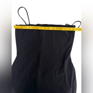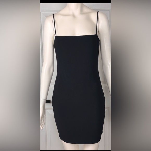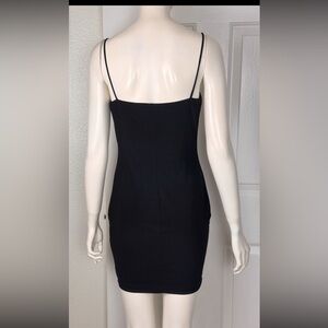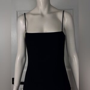 This elegant black sleeveless dress is perfect for any occasion. Its sleek design offers a timeless look that is both sophisticated and versatile dress in good condition see photo for size size tag is missing.fits like small