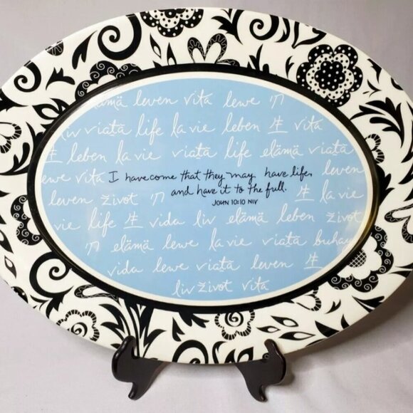 BLUE, BLACK and WHITE "LIFE" Porcelain Ceramic Oval Platter