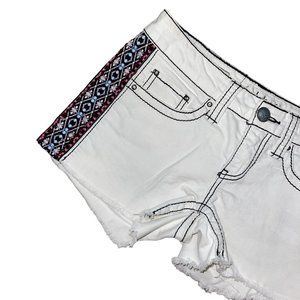 DayTrip Capricorn Distressed Shorts Womens 27 White Embroidered Western Bootie