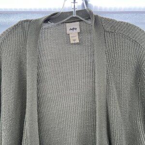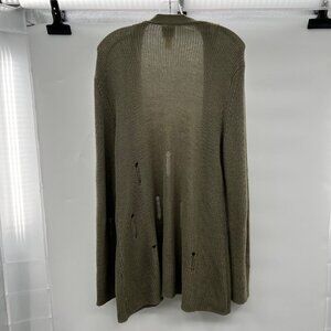 DayTrip Women's Distressed Knit Cardigan Open Front Long Sleeve Green Size Large