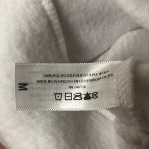 Long sleeve fleece sweatshirt in white color with red text on the chest stating “IM THE ONLY HELL MY MAMA EVER RAISED”. Pull on design. Crewneck. Relaxed and cozy fit. Lightweight and soft fabric. Brand sold at stores / sites such as Revolve and Dolls Kill.