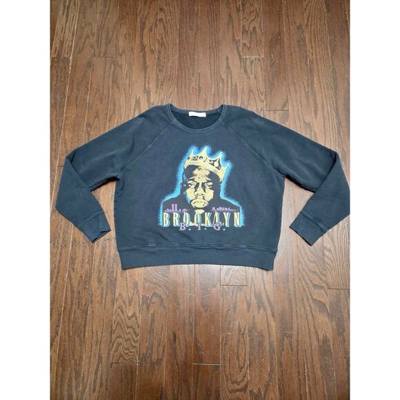 Daydreamer Anthropologie Pullover S Washed Black Biggie King of Brooklyn Graphic