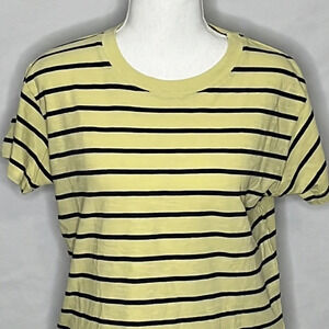 Daydreamer Crew Neck Short Sleeve Striped Cotton T Shirt - NEW - Size XS. New with tags. Short sleeve, 100% cotton, yellow with black stripes, slightly cropped, rib knit crew neckline. Approximate measurements: 17" bust, 20 1/2" length.