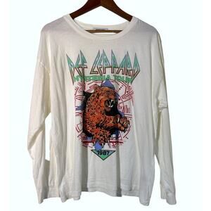 Daydreamer Def Leppard Hysteria Oversized Graphic Tee White Long Sleeve Medium