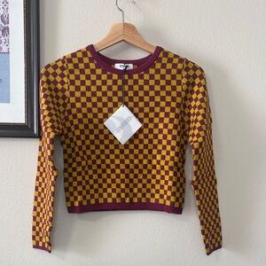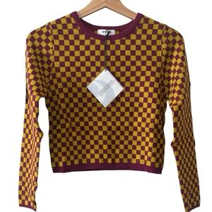 Daydreamer Fig Check Fitted Cropped Sweater - Small