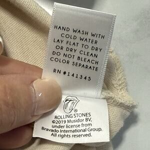 Iconic Rolling Stones Mouth and Tongue Logo printed on front with script on back.