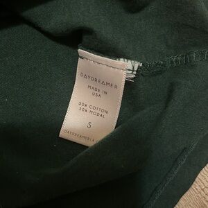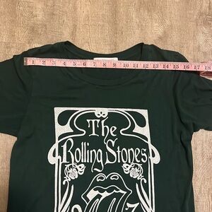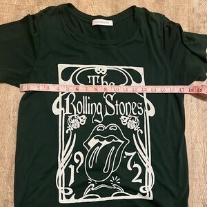 Embrace a vintage vibe with this Daydreamer short sleeve tee in a rich green hue, featuring a striking Rolling Stones graphic in an art nouveau style. The crew neck design and ornate print make it a standout piece for any casual outfit. Size small 50/50 cotton modal. Length 24in pit to pit measures 17/17.5 in Like new!