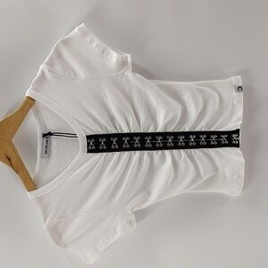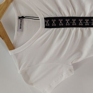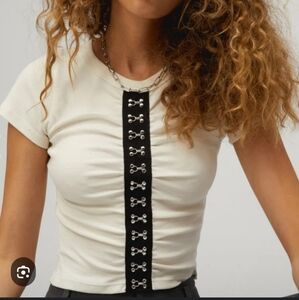 Daydreamer Hook Eye Cropped Tee White Black Size Large Short Sleeve Stretch