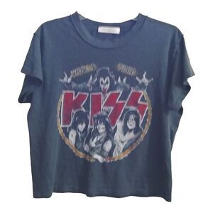 Daydreamer KISS Cropped Tee Shirt Sz L Short Sleeve Dark Gray No Size Tag