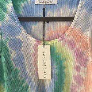 Daydreamer Pastel Tie Dye Ribbed Cropped Tank Top Women’s Size Large NEW