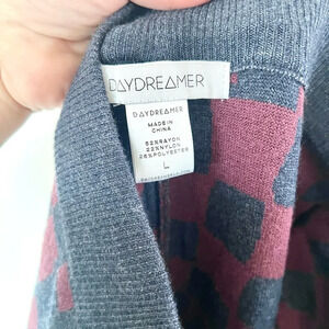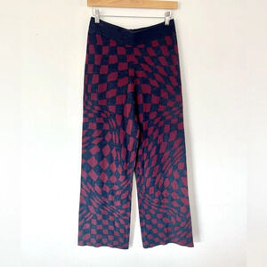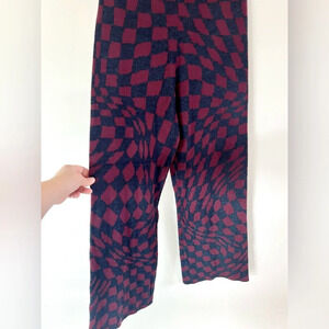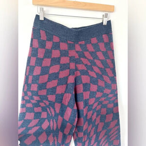 Daydreamer Plum Berry Wave Check Pull-On Wide Leg Knit Sweater Pants Size Large
