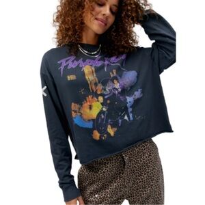 Daydreamer Prince Purple Rain Graphic Crop Long Sleeve Shirt Top Size XS