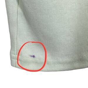 Condition: NWOT. New and never worn. Small flaw on back, purple mark. See circled photo.