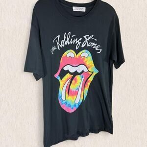 Daydreamer for Free People Rolling Stones tie-dye tongue tee in size Small. Made in the USA, 100% cotton. Soft slouchy fit with a bold tie-dye version of the iconic Rolling Stones lips-and-tongue logo. Great for vintage-inspired, music-festival, streetwear, or retro lovers.
