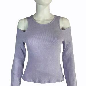 Daydreamer Women’s Lilac Haze Mineral Cold Shoulder Top Shirt NWT. Waffle knit. Long sleeve.
