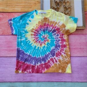 Daydreamer x Revolve Tie Dye Girlfriend Tee Shirt In Woodstock, women's estimated size is S/M depending on desired fit (no size tag)