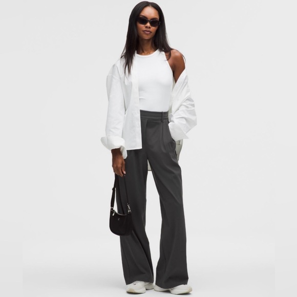 Chic wide-leg pants in charcoal. Versatile and stylish. Ideal for any setting. Nothing wrong with them! I just don’t wear this color as much as I thought.