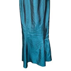 Daymor Couture Size 10 Ruffle Teal Metallic Gown Off The Shoulder Long Formal