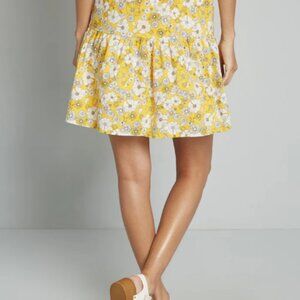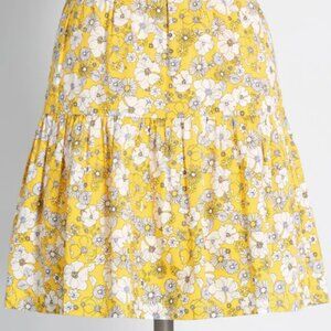 Spin and frolic your spring days away in breezy, timeless style when you rock this ModCloth namesake label skirt. Fully-lined and made from a bright yellow-hued lightweight cotton poplin weave, this high-waisted A-line boasts an exclusive vintage and Western-inspired white and black-hued floral print that was created in-house by our talented design team and exudes dreamy, 70s vibes. A tiered silhouette with a subtle ruffle hem adds flair to this ultra-feminine piece. Perfect for tucking a white crew neck tee into and wearing your fav lightweight cardigan and flats for a quintessential spring ensemble.