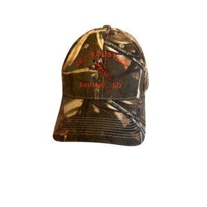This camo hat with adjustable strap offers a blend of style and utility, featuring "Old Roosters, Redfield SD" embroidery, and durable construction.