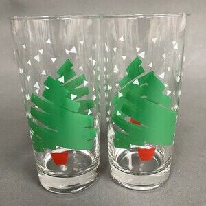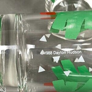 Dayton Hudson 1988 Highball Glasses Christmas Tree Clear Green Red Lot of 2