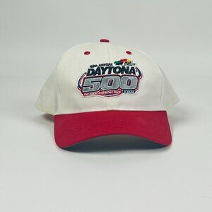 Daytona 500 NASCAR Embroidered Logo Hat Red White Adjustable Cap Race Fan Gear