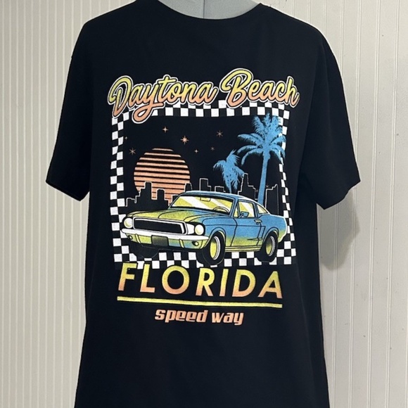 Daytona Beach Florida Speedway Vintage Graphics Black T-Shirt Adult M/Youth XL