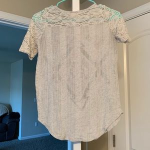 This top was a favorite with any color undershirt! The lace sleeves do have some stretch to them. It is a small, tag is worn down ๐