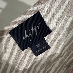 Daytrip Beige, Gold and White Striped V-Neck Blouse