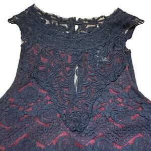 Daytrip Black Red Lace Sleeveless Tank Top Women’s Size Small Keyhole Back