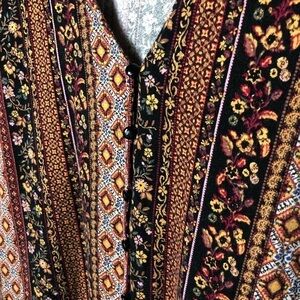 Daytrip Boho Button Down Floral V-Neck Flowy Long Sleeve Top L
