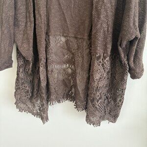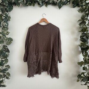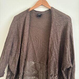 Women’s casual cardigan from Buckle, brand Daytrip! Stretchy material great for any outfit or layering. Knit fabric, eyelet detail along edge, waist length, open front. Great used condition! *carob green brown color