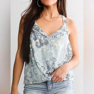 Daytrip Buckle Metallic Surplice Tank Top blue size M