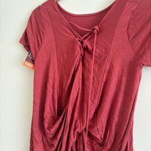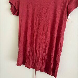 New women’s casual short sleeve shirt from Buckle, brand Daytrip! Stretchy and lightweight material great for any outfit or layering. Scoop neck, lace up back detail, waist length, classic fit. New with tags still attached, perfect condition!