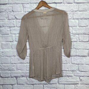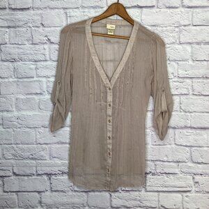 Daytrip Buckle Small S Beige Embellished Beaded Pintuck Roll-tab Button Blouse