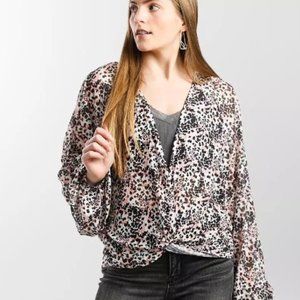 Daytrip Buckle Twisted Front Mesh Top Blouse SIze Large