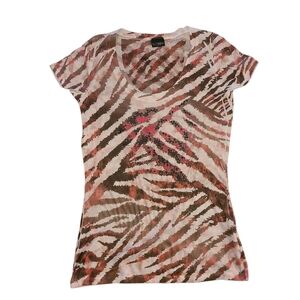 Daytrip Pink & Cream Zebra Print Fitted Tee – L