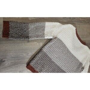 ***see pics for what could be considered pulls. Elevate your wardrobe with this stylish Daytrip Buckle Pullover Sweater in striped multicolor. The relaxed-fit knit sweater features a scoop neck and long sleeves, making it a perfect choice for all seasons. The pullover closure adds convenience to wear and the buckle detail gives it an extra edge.
