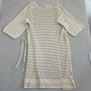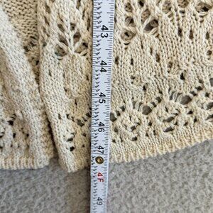 Daytrip Cardigan Sweater Womens Medium Beige Open Knit Crochet Belted Boho Layering