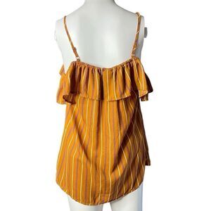 Daytrip Cold Shoulder Vertaical Striped Blouse Brown & White Size XS