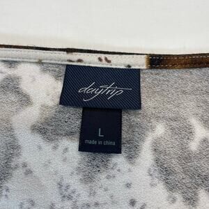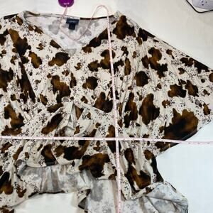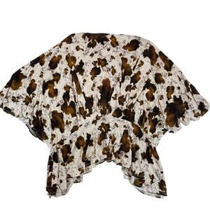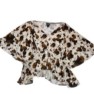 Daytrip Cow Print Top Women's L Brown White Dolman V-Neck High Low Cropped