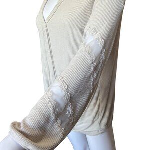 Daytrip Cream Lace Sleeve Ribbed Knit V-Neck Crossover Sweater Womens Size XL