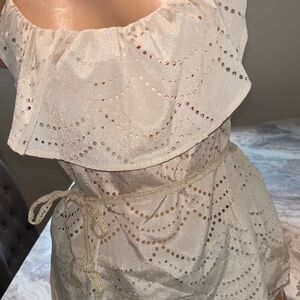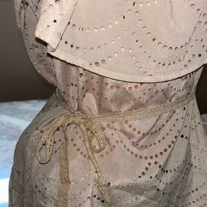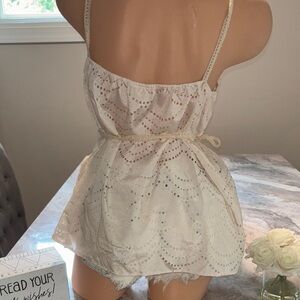 This cream camisole from Daytrip features a charming ruffled neckline and a stylish tie front, adding a touch of elegance to any outfit. The light and airy fabric makes it perfect for warm weather, while the intricate design ensures a sophisticated look. Ideal for layering or wearing on its own, this top is a versatile addition to your wardrobe. Like New condition. Size Large. Super cute top.
