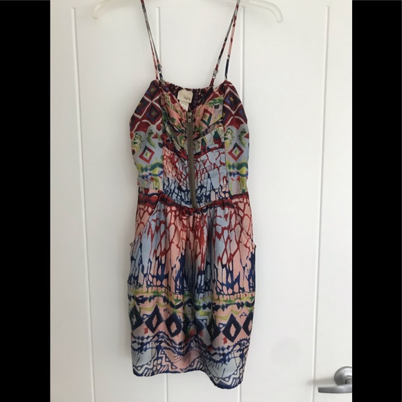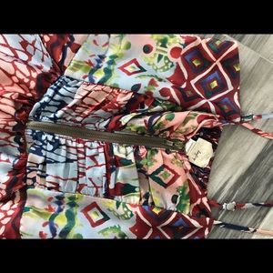 Bodice is slightly shirred with front zipper. Supportive and thick enough (double lined) to go bra-less.